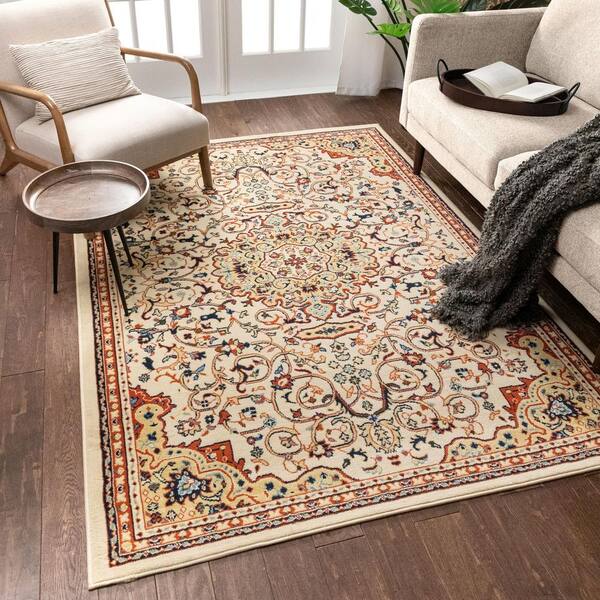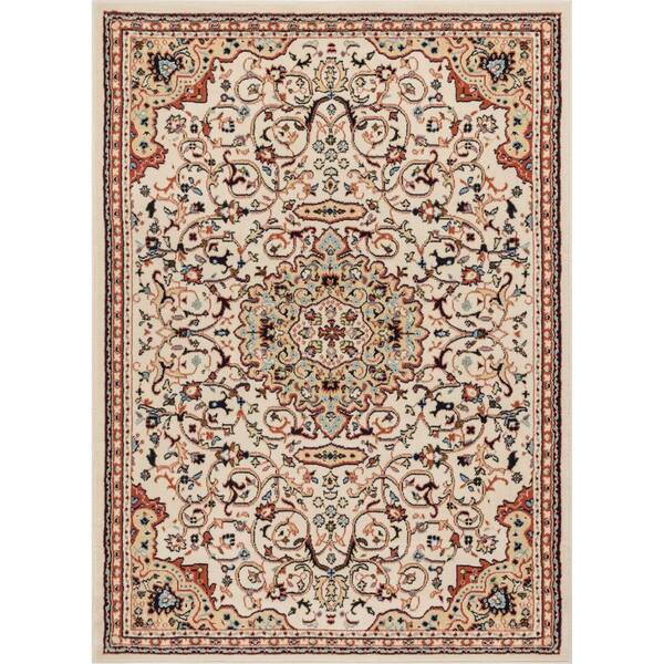 Persa Isfahan Traditional Medallion Ivory 5 ft. 3 in. x 7 ft. 3 in. Area Rug