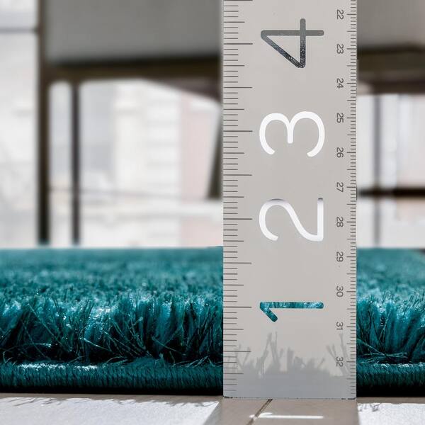 Rainbow Chroma Glam Solid Teal 3 ft. 11 in. x 5 ft. 3 in. Multi-Textured Shimmer Pile Shag Area Rug