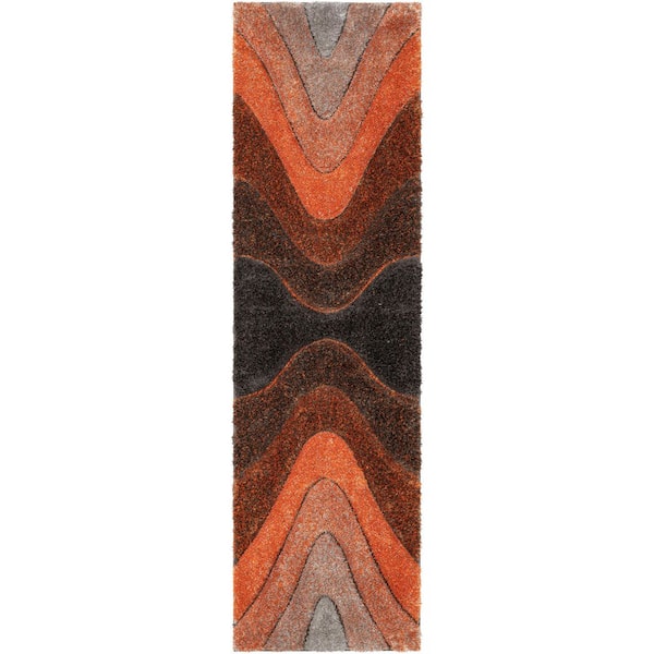 San Francisco Luz Modern Geometric Shag Hand-Carved, Grey Orange 2 ft. 7 in. x 9 ft. 10 in. Runner, Area Rug