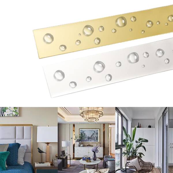0.8 in. x 0.01 in. x 196 in. Self-Adhesive Stainless Steel Metal Wall Panel Moulding Trim for Wall Decor, Silver