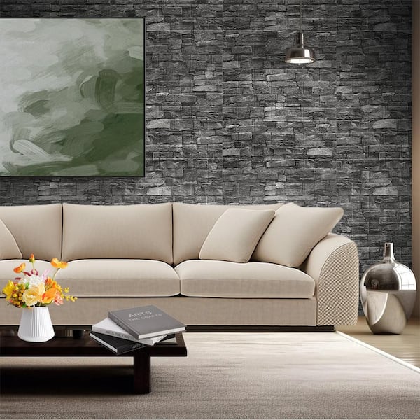 1.25 ft x 1.15 ft Marble Black Self-Adhesive Faux Brick 3D Decorative Wall Panels Peel Stick Foam Wallpaper (20-Pack)