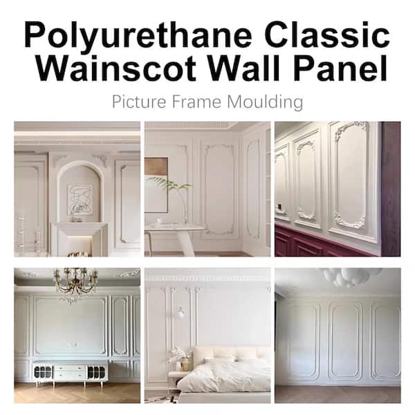 1.5 in. x 4/5 in. x 96 in. Polyurethane Classic Wainscot Wall Panel Moulding Picture Frame Moulding
