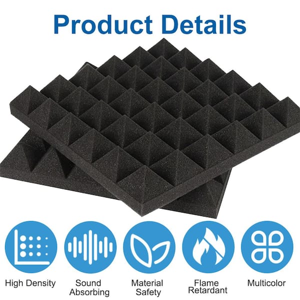 1 ft. x 1 ft. x 2 in. Sound Absorbing Panels Black Echo NoiseCancelling Foam for Recording Studio (12-Pack)