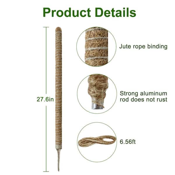 27.6 in. Bendable Moss Pole Plant Stake for Plant Monstera Climbing Plants with Jute Rope (2-Pack)