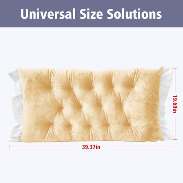 39.37 in. Light Yellow Headboard Pillow Tie-on Velvet Back support Cushion for Bed Rest and Sofa Cushion