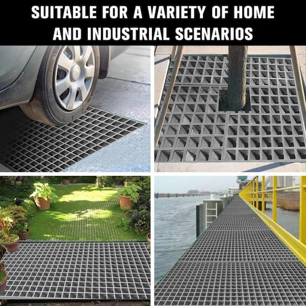 4 ft. x 12 ft. x 1 in. Fiberglass Molded Grating Composite for Driveway Ground Grid Paver for Landscaping, Gray, Resin