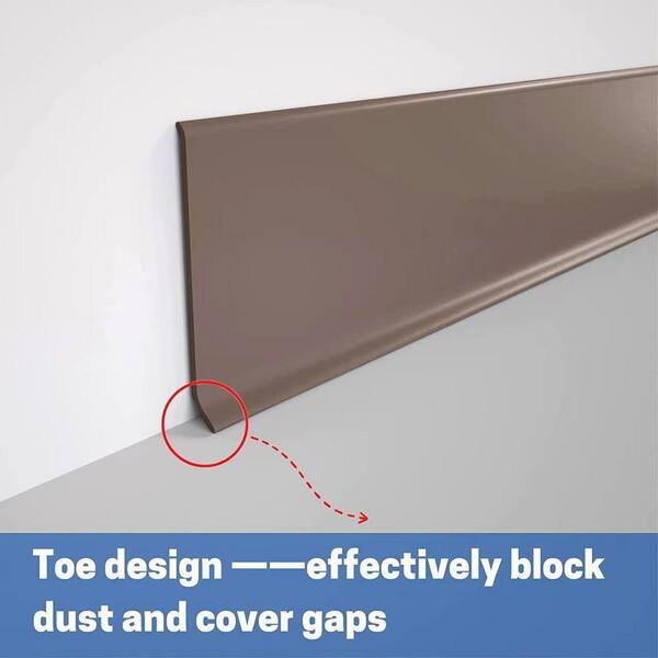 4 in. W x 16.4 ft. L Self-Adhesive PVC Flexible Baseboard Moulding Trim, Wall Base, Brown (Sold by Piece)