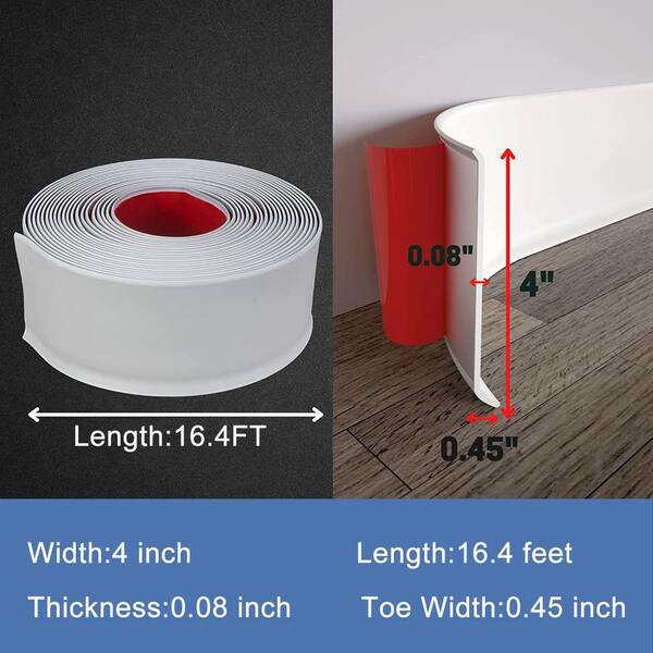 4 in. W x 16.4 ft. L x 0.4 in. D Self-Adhesive PVC Flexible Baseboard Moulding Trim, Wall Base, White (Sold by Piece)