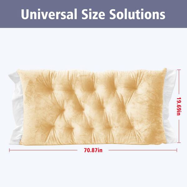 70.87 in. L Light Yellow Headboard Pillow Tie-on Velvet Back Support Cushion for Bed Rest and Sofa Cushion