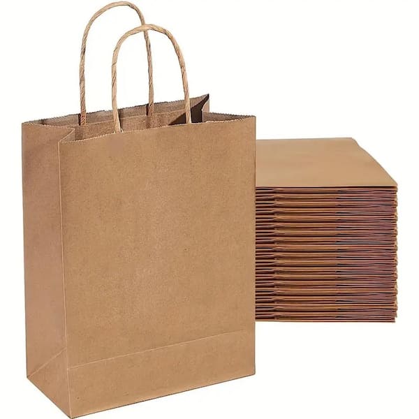 8.2 in. x 4.3 in. x 10.6 in. Kraft Paper Gift Bag with Handle Grocery Bag Tote Bag Christmas Decoration (25-Count)