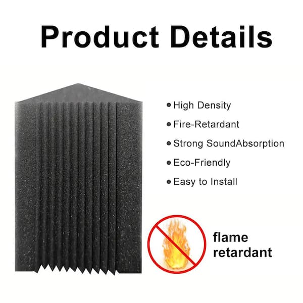 9 .5 in. x 4.8 in. x 4.8 in. Black Corner Block Bass Trap Sound Absorbing Panels Foam for Recording Studio (12-Pack)