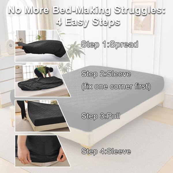 Black Polyester Protector Diamond Grid Ultrasonic Waterproof Quilted Fitted Sheet-Size Q