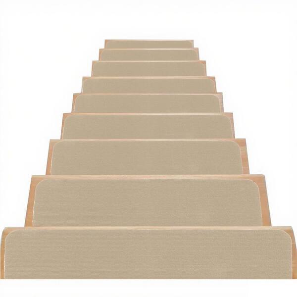 Self-Adhesive Non-Slip Dark Beige 8 in. x 30 in. Polyester TPR Backing Indoor Outdoor Stair Tread Cover (Set of 4)