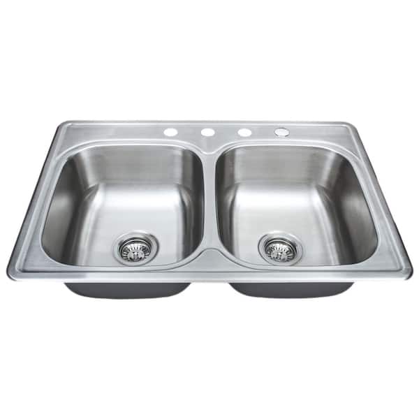 Halsted Series Top-Mount Stainless Steel 33 in. 4-Hole Double Bowl Kitchen Sink Package