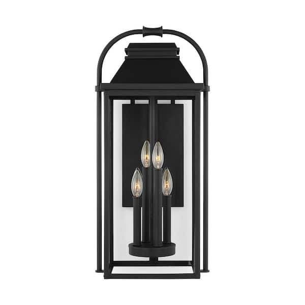 Wellsworth Large 3-Light Textured Black Outdoor Wall Lantern Sconce with Clear Glass