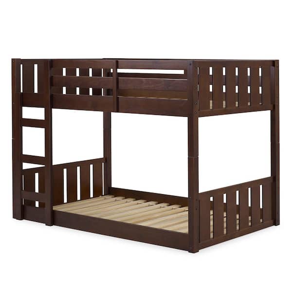 Walnut Solid Wood Modern Twin Bunk Bed with Integrated Ladder