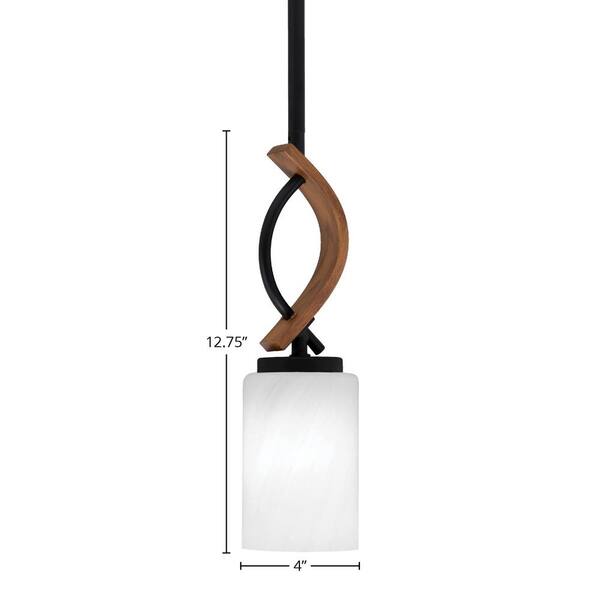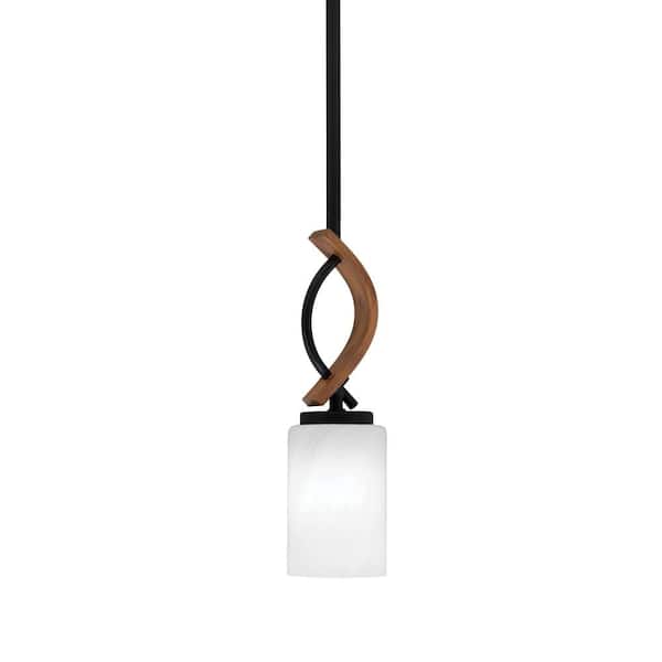 Wensley 100-Watt 1-Light Black and Wood-Look Shaded Pendant Light with 4 in. White Marble Shade, No Bulb Included