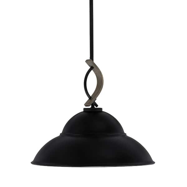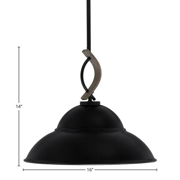 Wensley 100-Watt 1-Light Black and Wood-look Metal Shaded Pendant with with 16 in. Metal Shade No, bulb included