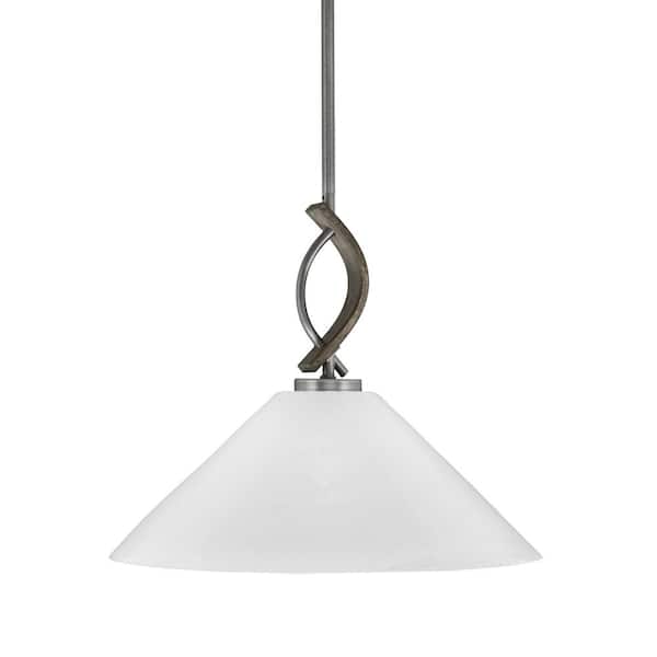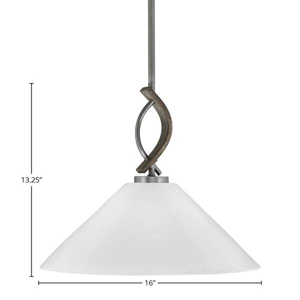 Wensley 100-Watt 1-Light Graphite & Wood-look Metal Shaded Pendant Light with 16" White Shade, No bulb included