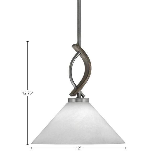 Wensley 100-Watt 1-Light Graphite & Wood-look Shaded Pendant Light with 12" White Marble Shade, No bulb included