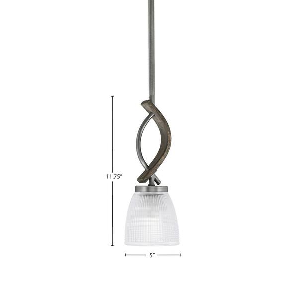 Wensley 100-Watt 1-Light Graphite & Wood-look Shaded Pendant Light with 5" Clear Ribbed Shade, No bulb included