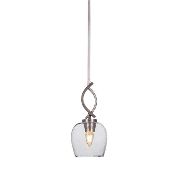 Wensley 100-Watt 1-Light Graphite & Wood-look Shaded Pendant Light with 6" Clear Bubble Shade, No bulb included