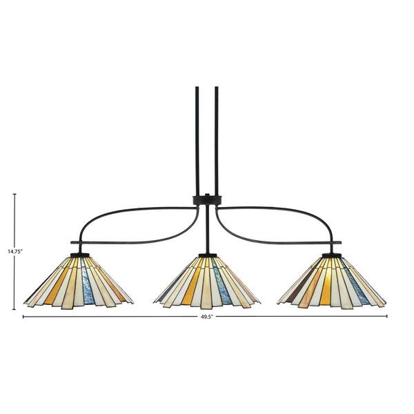 Wensley 14.75 in. 3-Light Matte Black & Painted Distressed Wood-Look Metal Chandelier Sequoia Art Glass Shade