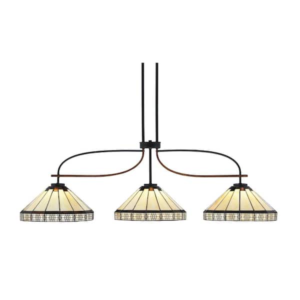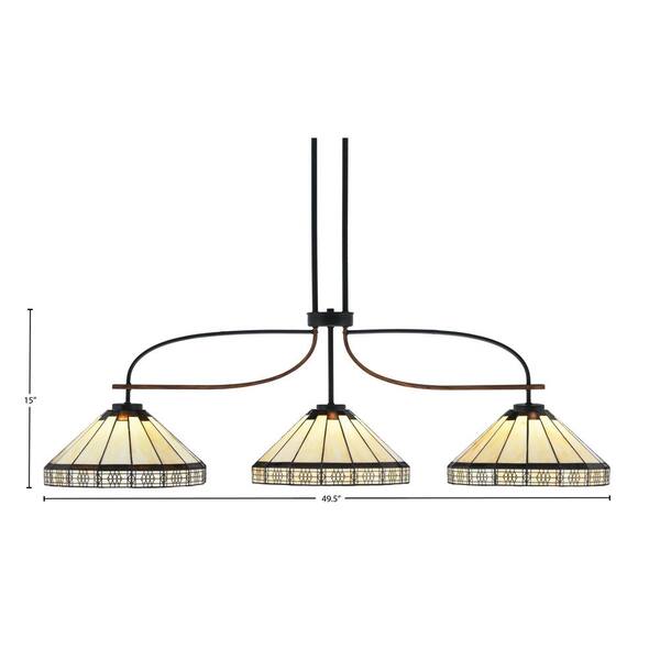 Wensley 15 in. 3-Light Matte Black & Painted Wood-Look Metal Chandelier Honey & Brown Mission Art Glass Shade