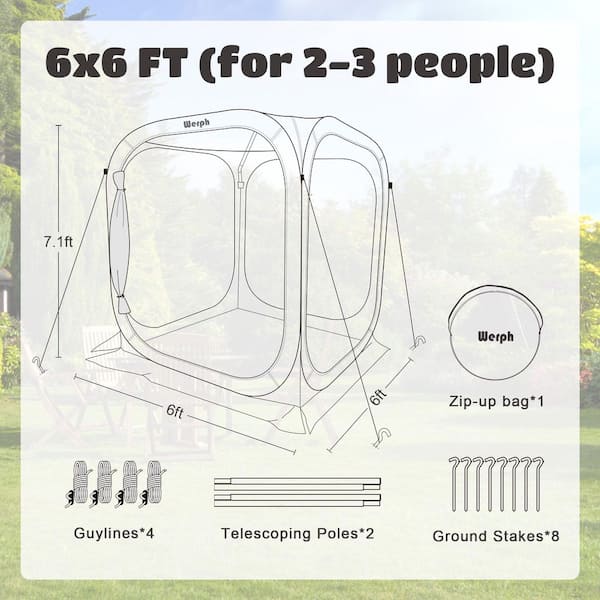 6 ft. x 6 ft. Green Portable Canopy Tent with Mesh Mosquito Net, Screen House Room Camping Canopy Shade Tent