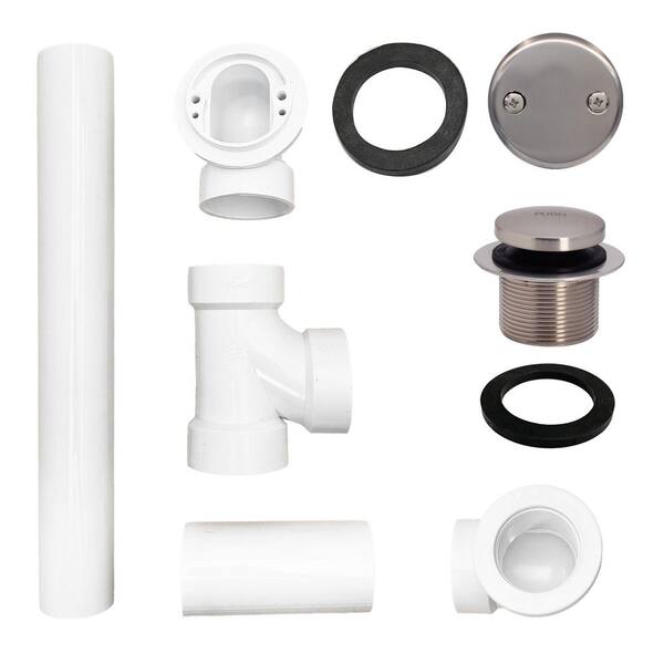 1-1/2 in. Schedule 40 PVC Tip-Toe Drain Bath Waste and Overflow with 2-Hole Faceplate in Stainless Steel