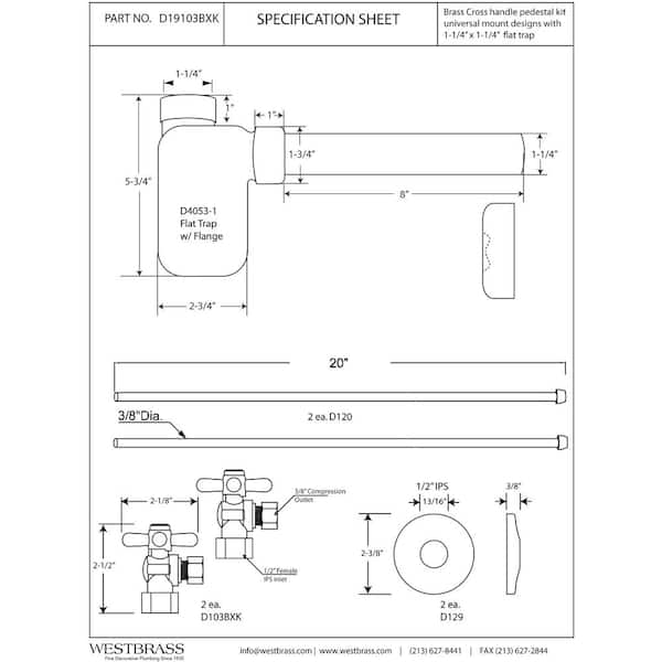 1/2 in. IPS Cross Handle Angle Stop Complete Pedestal Sink Installation Kit in Satin Nickel