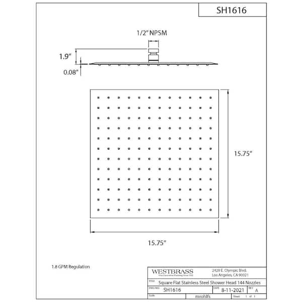 1-Pattern 16 in. Wall Mount Square Rain Fixed Shower Head in Oil Rubbed Bronze