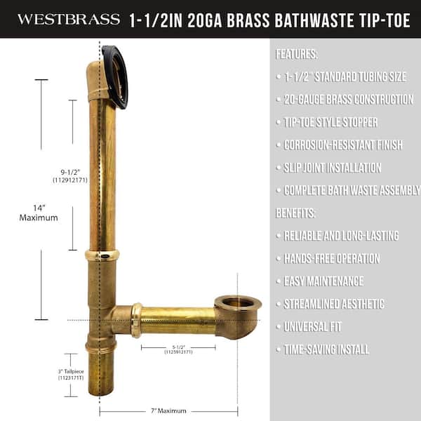 14 in. Bath Waste & Overflow Assembly with Trip Lever and Beehive Strainer Drain in Polished Brass