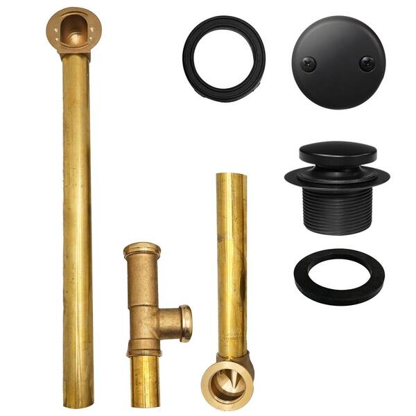 22 in. 17 Gauge Brass Tip-Toe Drain Waste and Overflow in Matte Black