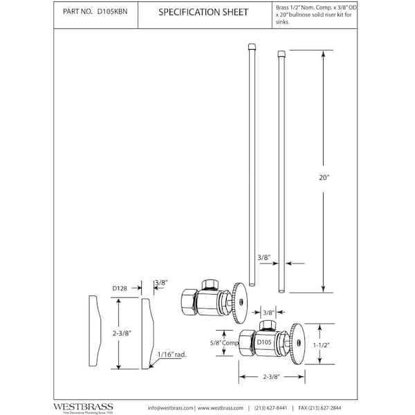 5/8 in. x 3/8 in. OD x 20 in. Bullnose Faucet Supply Line Kit with Round Handle Angle Shut Off Valve, Polished Nickel