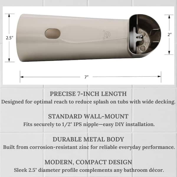 7 in. Extended Reach Wall Mount Tub Spout with Diverter, Satin Nickel