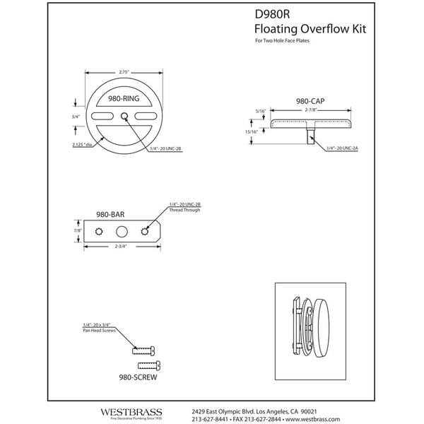 • Easily fits integrated overflow tubs and 2-hole elbows