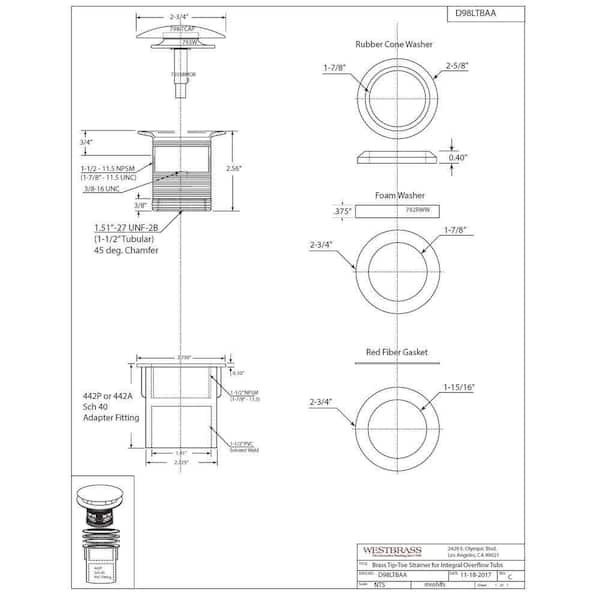Integrated Overflow Drain 1-1/2 in. NPSM Coarse Thread Tip-Toe Mechanism with ABS Adapter in White