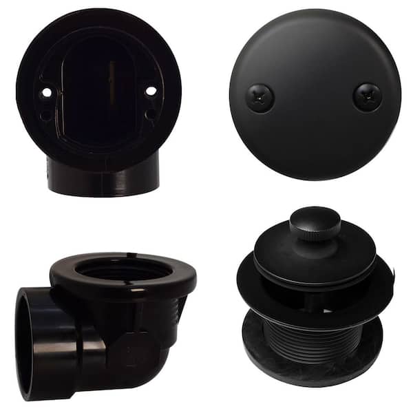 Sch. 40 ABS 1-1/2 in. Course Thread Plumber's Pack Twist Close Bathtub Drain with Two-Hole Elbow, Matte Black