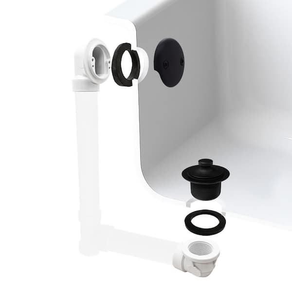 Sch. 40 PVC 1-1/2 in. Course Thread Plumber's Pack Twist Close Bathtub Drain with Two-Hole Elbow, Matte Black