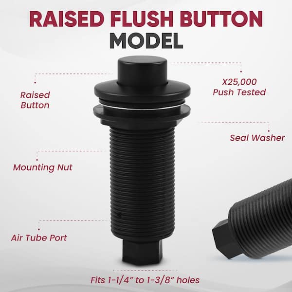 Sink Top Waste Disposal Replacement Air Switch Trim Only, Raised Button, Matte Black