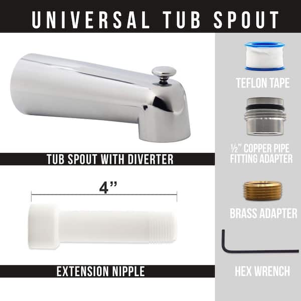 Universal Fit 7 in. Diverter Tub Spout, Zinc in Polished Chrome
