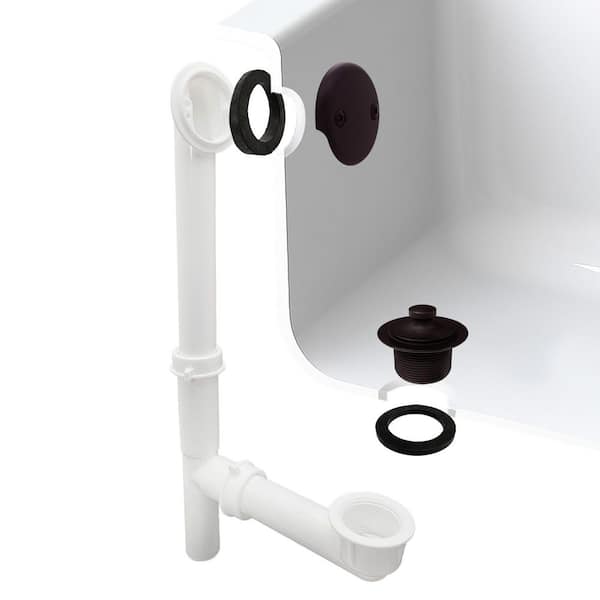 White 1-1/2 in. Tubular Pull and Drain Bath Waste Drain Kit with 2-Hole Overflow Faceplate in Oil Rubbed Bronze
