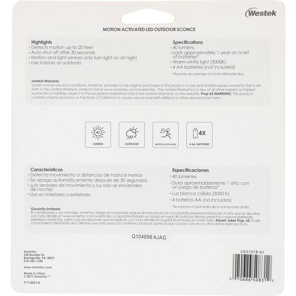 Black Motion Sensing LED Outdoor 3.5 in. Wall Mounted Sconce