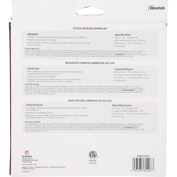 Indoor/Outdoor 12 ft. White LED Rope Light Kit