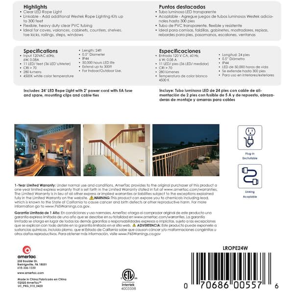 Indoor/Outdoor 24 ft. White LED Rope Light Kit