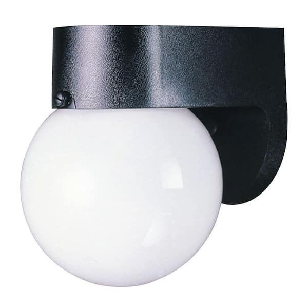 1-Light Black Polycarbonate Outdoor Wall Lantern Sconce with White Glass Globe