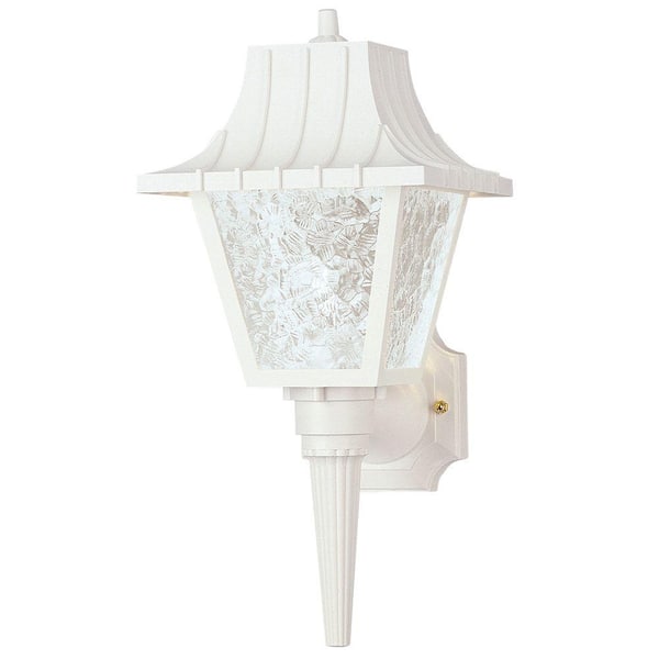1-Light White Polycarbonate Outdoor Wall Lantern Sconce with Removable Tail