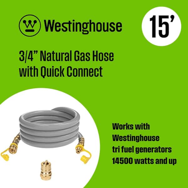 • 15’ natural gas hose and fitting for your Westinghouse generator