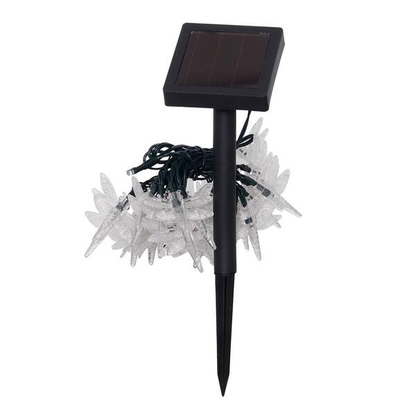 30-Light 13 ft. Solar Powered White Dragonfly Integrated LED String Light Set
